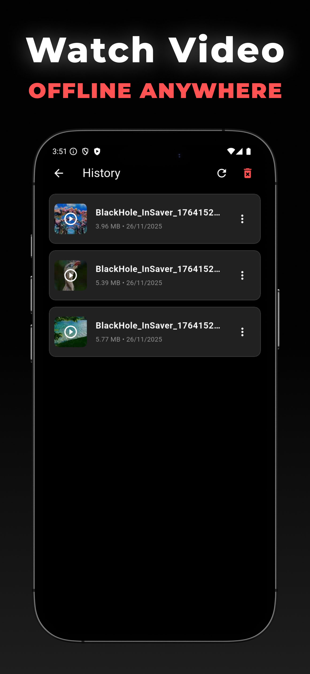 Watch your saved videos offline anytime, anywhere.