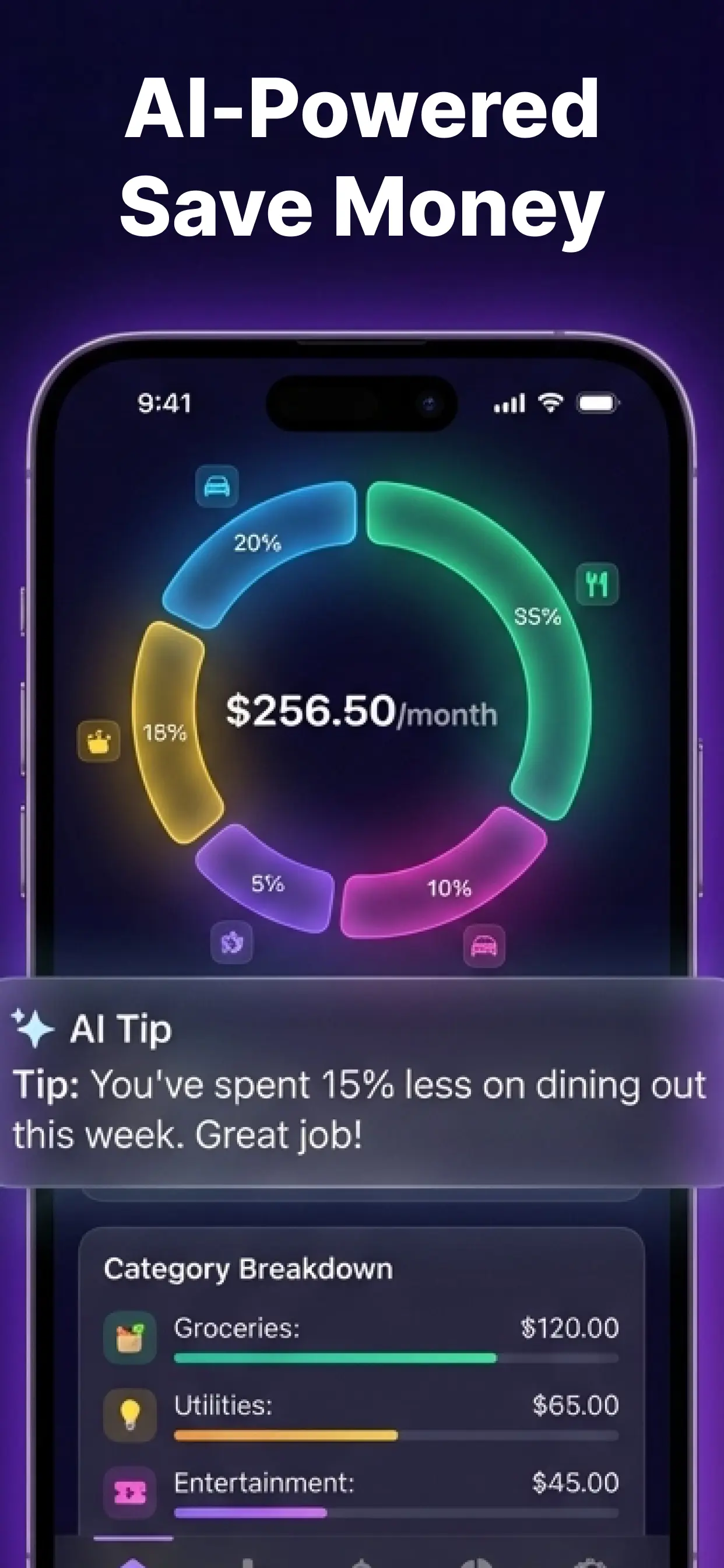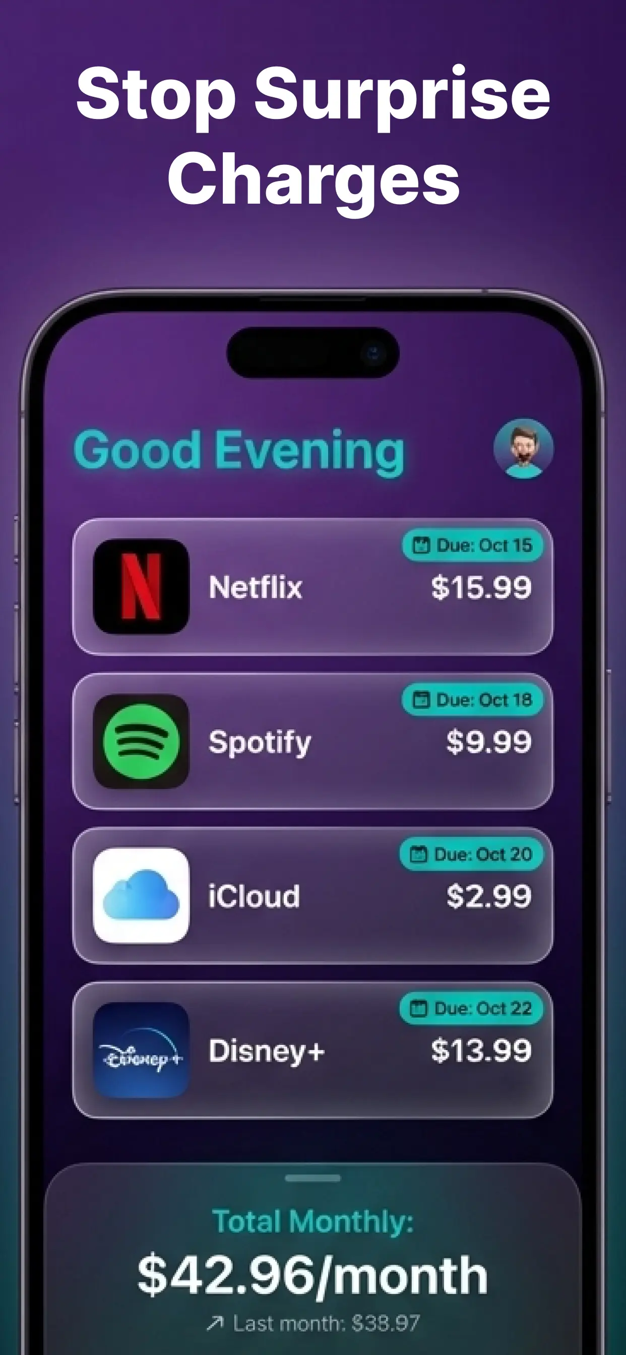 View all your subscriptions at a glance with spending breakdowns and organized categories.